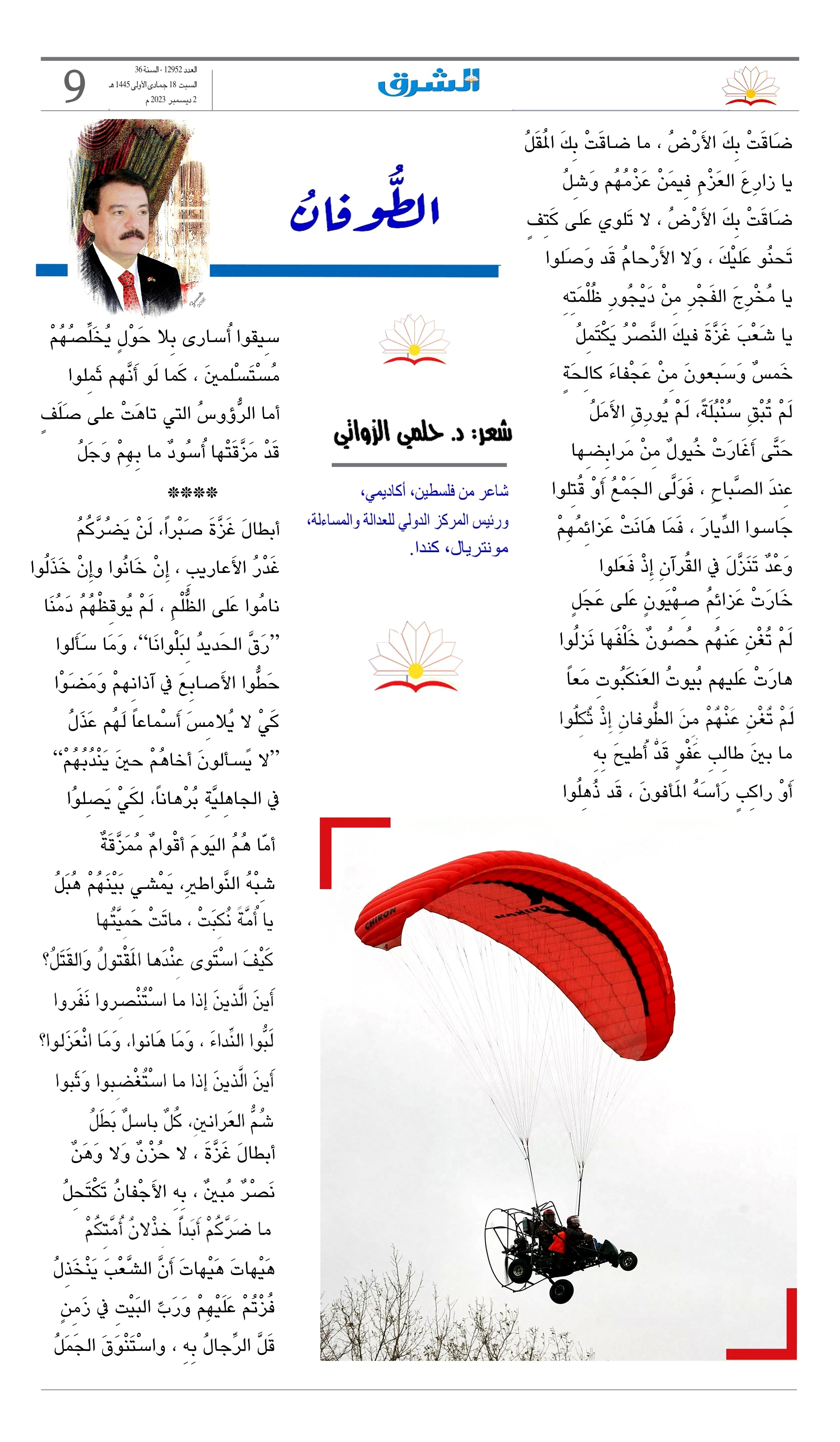 الزَّواتي، حلمي ، “الطوفان”، الشرق (2 كانون الأول/ديسمبر 2023)، 9.
