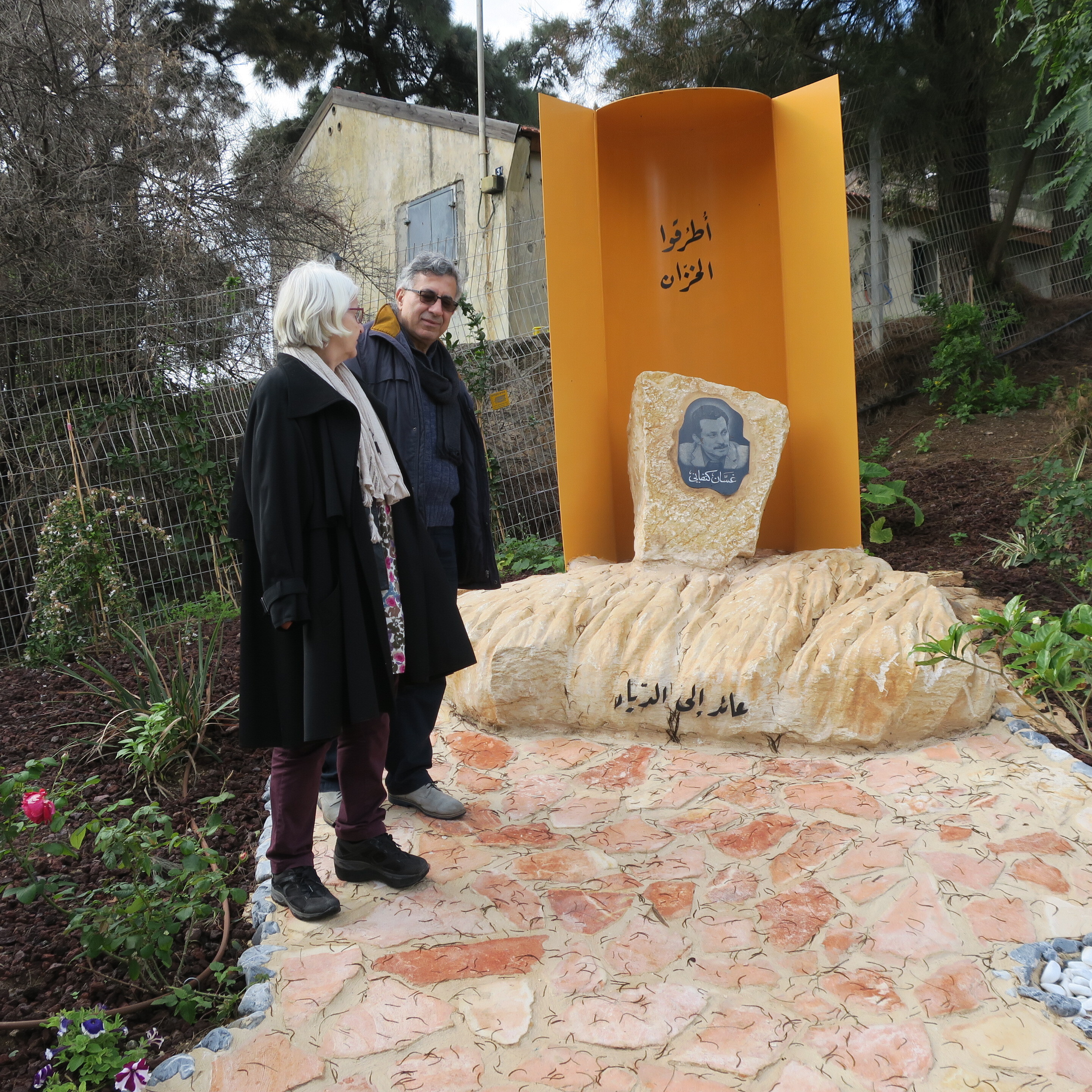 خلال زيارة الصديقة الزعتريّة إيفا (سميرة) حمد للوطن في أواخر نوفمبر 2018 زُرنا برفقة زوجها نستور النصب التذكاريّ الذي أقيم في حينه تخليدًا لذكرى الأديب الفلسطينيّ غسّان كنفاني، ابن مدينة عكا، في مدخل مقبرة النبي صالح في مدينة عكا، حيث تربطها علاقة بآني كنفاني ولكونها متطوّعة مع الجبهة الشعبيّة في حينه. التقطنا الصور التذكاريّة وشاركنا شريطًا مصوّرًا على صفحات الفيس بوك، وبعده بشهر فوجئت بمحادثة هاتفيّة من إيفا في ساعات الليل المتأخرة، مرتبكة ومتأثّرة متسائلة إزاء إزالة النصب، تلبية لنزوة وزير الداخليّة الإسرائيلي آنذاك أرييه درعي الذي توجّه بدوره إلى لجنة أمناء الوقف الإسلاميّ لإزالة النصب التذكاريّ بحجّة أنّ غسان “مخرّب وينتمي للجبهة الشعبيّة لتحرير فلسطين”، رغم اغتياله يوم 08.07.1972!! وهل حدث ذلك إثر نشر الشريط؟ هدأت من روعها قائلًا: “لا، بل هو صوت غسّان وقلمه، ما زال بُعبُعًا يُقلق نومهم ولا يفارق أحلامهم!”