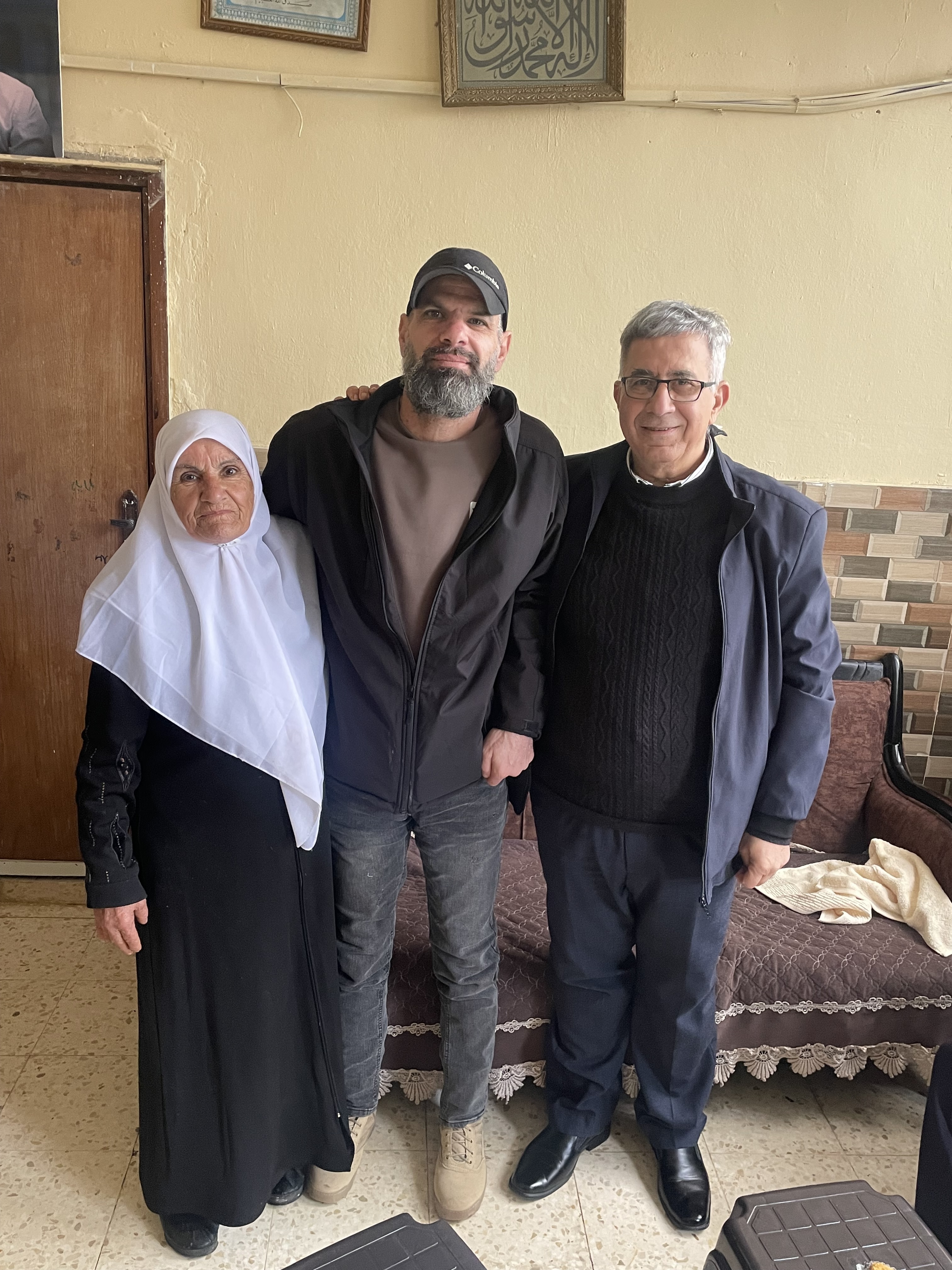 رافقني الأصدقاء فراس حج محمد ونبهان غانم لزيارته بين أهله في بيتهم في قرية حارس؛ دون إذن من سجان ودون رقيب، تعانقنا، وتباوسنا، مطوّلاً، والمرة دون زجاج مقيت وحواجز، وعاتبني أنّي جئت دون رِفقة زوجتي سميرة.