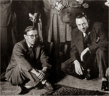 ج-كان لقاؤهما الأول في باريس أثناء الاحتلال،شهر يونيو 1943 ، خلال أول تقديم لمسرحية الذباب لسارتر. يعرف كل واحد منهما سلفا أعمال الثاني ويتبادلان التقدير.اكتشف كامو سارتر سنة 1938، في الجزائر حينما قرأ مسرحية الغثيان، وكتب عنها بحماس في جريدته :\’\’الجزائر الجمهورية\’\’.بدوره أبدى سارتر إعجابه برواية الغريب، الصادرة سنة1942،نص كتبه شاب غير معروف لكنه سرعان ما حظي بدعاية واسعة بين أوساط الدوائر الثقافية الباريسية. يكمن اهتمامهما المشترك بموضوع العبث، في قلب منظومة أفكارهما الخاصة، وعشقهما لكل أجناس الكتابة، من الرواية إلى الدراسة البحثية وكذا المسرحية،جوانب تفسر اهتمامهما المتبادل. أيضا،حينما استقر كامو في باريس سنة 1943 ،وأصبح منتميا إلى غاليمار مكلفا بقراءة المشاريع المتوخى إصدارها،فقد تطلع الاثنان للقاء يجمعهما.سعي تحقق فعلا، وتحولا على إثره إلى صديقين منذ الوهلة الأولى. استند انجذابهما خصوصا على تبايناتهما :انبهر سارتر بهذا الشاب – يصغره كامو بفارق ثمان سنوات – الوسيم، المسلِّي، الجذاب، الماجن أحيانا إلى حد ما،بحيث رثاه سارتر عن حب عقب موته، واصفا إياه ب :\’\’ زُقَاقِيّ الجزائر الصغير\”. بينما استمالت كامو، دقة سارتر وعمقه، ثم قدرته في خضم ذلك على أن يكون وُدِّيّا ومسليا. التقيا كثيرا،إلى حد أن سيمون دي بوفوار، أبانت تقريبا عن غيرتها خلال تلك الحقبة. إذن بشكل سريع جدا، توافقا على أن سارتر أكثر ذكاء، وكامو أقوى إبداعيا وفنيا. أيضا، يعتبر كل واحد منهما، أن الثاني حَمَلَ له الكثير.