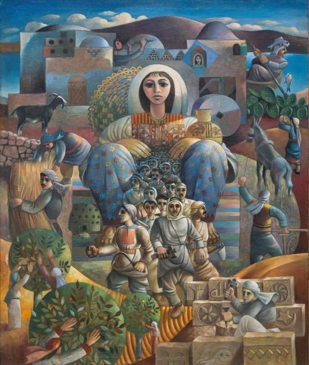 “القرية تستيقظ” لوحة للفنان التشكيلي الفلسطيني سليمان منصور